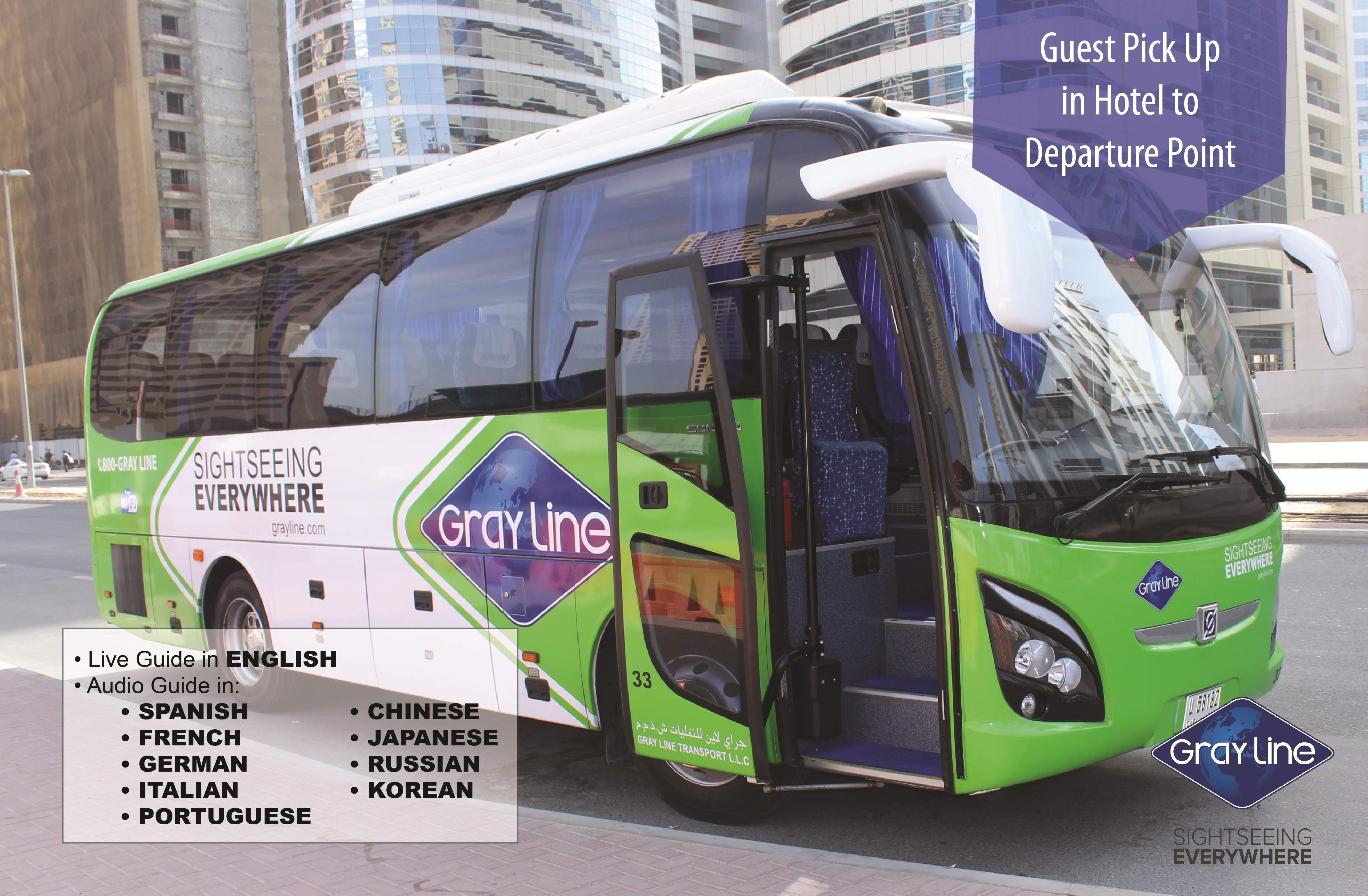 Hop onto one of our luxurious Grayline tour busses for the ultimate Dubai experience, where you will have a chance to discover all that this vibrant metropolis has to offer. Immerse yourselves in this enriching excursion and learn about how a modest fishing village at the Dubai Creek was transformed into a city hub of beautiful skylines and rich culture, through a guided tour with different stops that make up the city's evolution throughout time.
